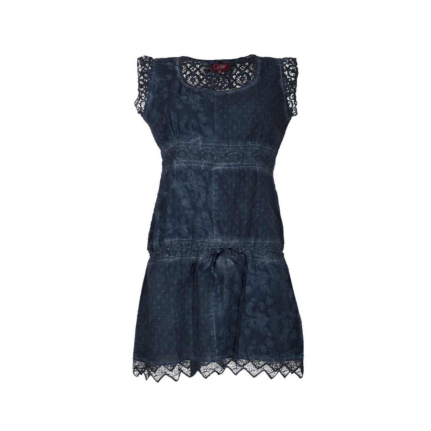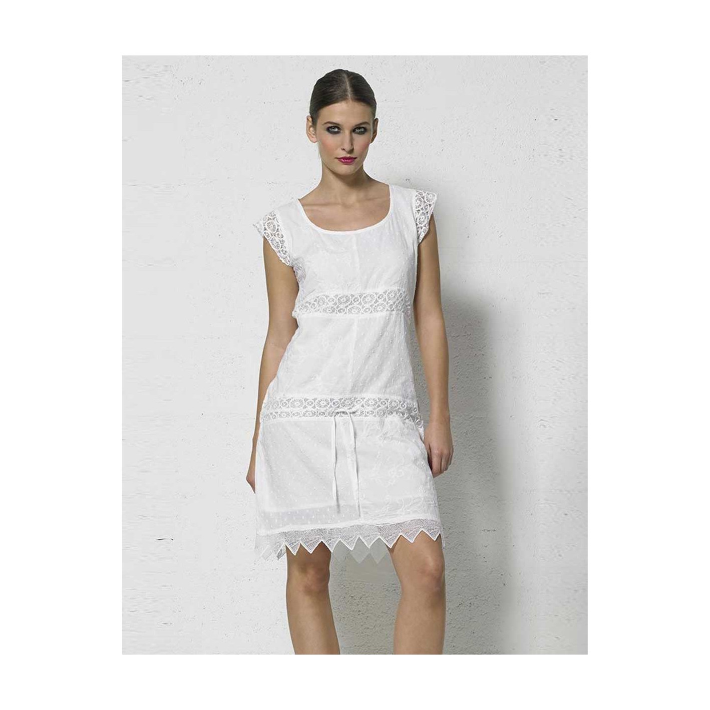 Denne korte kjole uden ærmer og med rund hals har et yderst enkelt look Klolen har mønster på tværs